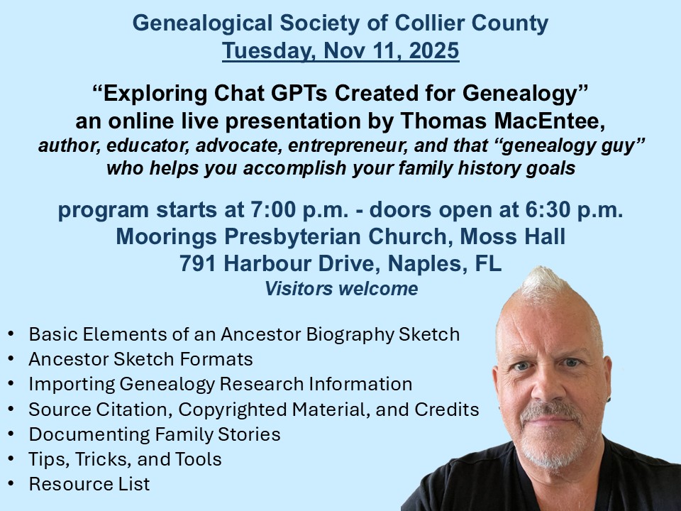 Presented by Thomas MacEntee, of the Genealogy
